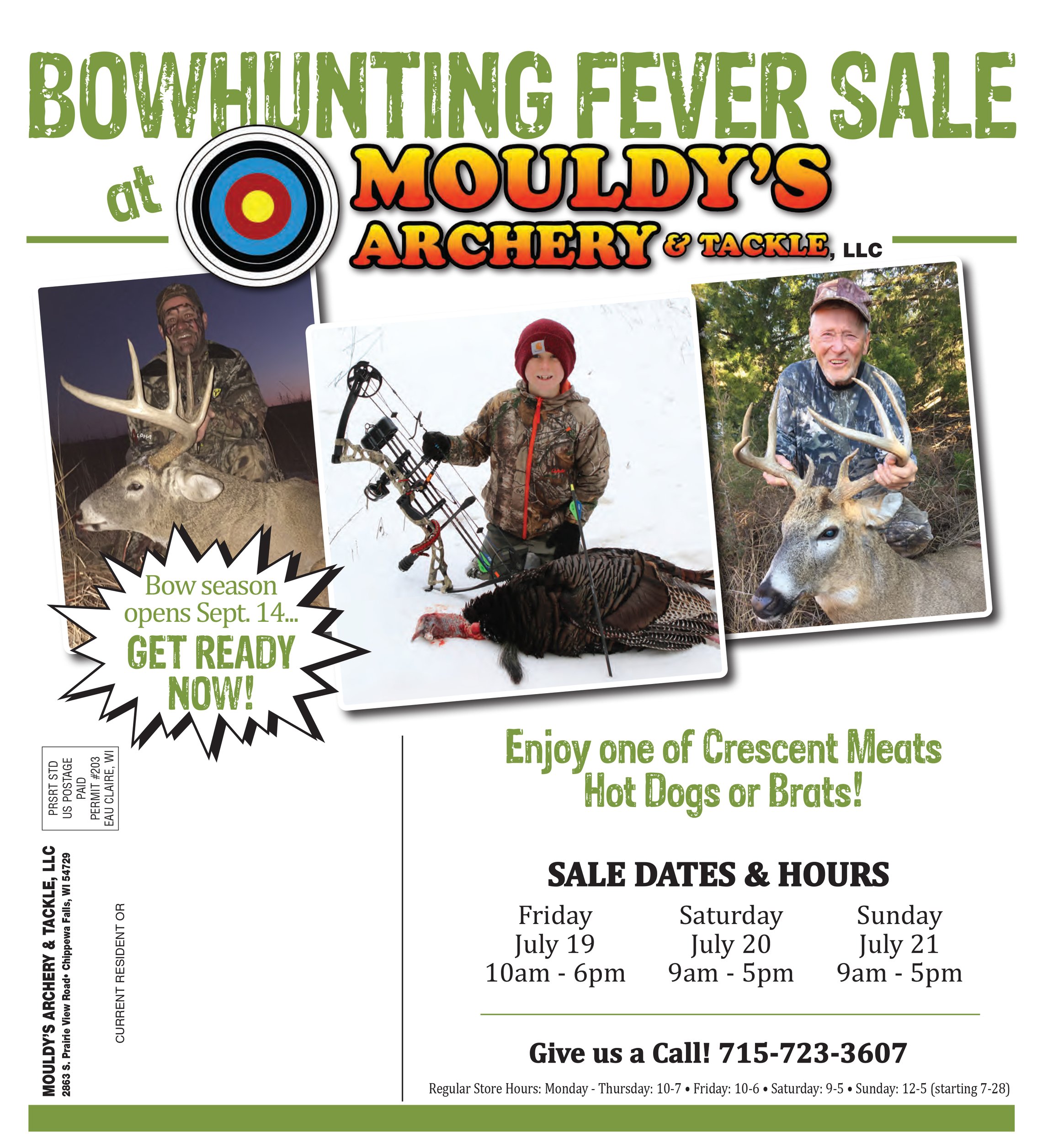 « All Events This event has passed. Bowhunting Fever Sale July 19, 2019 @ 3:00 pm - July 21, 2019 @ 11:00 pm « Wisconsin Opener: Statewide Antlerless Hunt Bowhunting Fever Sale » Click to View Sale » + Google Calendar+ iCal Export Details Start: July 19, 2019 @ 3:00 pm End: July 21, 2019 @ 11:00 pm
